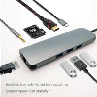 USB 3.1 Type-C to USB3.0x3+Micro SD+SD/MMC+HDMI+Gigabit+Type-C Charging